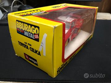 Vendo particolare modellino anni 80 di Toyota Celica marca Burago made in Italy in scala 1/24 Ottime condizioni generali come da foto, in scatola originale (la scatola ha un po di segni del tempo).