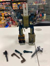 Vendo Transformers G1 prima generazione anni 80 Bruticus Combaticons. L’elicottero ha una parte interna della coda rotta, all’aereo manca il timone e la base dello stesso è rotto. Manca qualche accessorio. Le foto sono parte integrante della descrizione, condizioni come da foto. Per info non esitate a contattarmi.