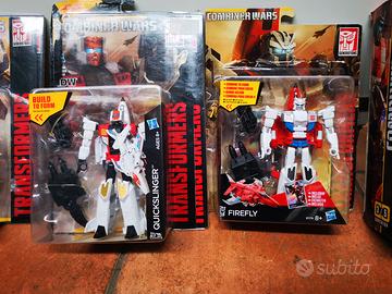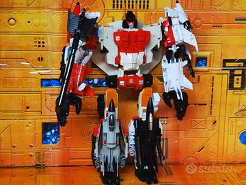 Transformers combiner wars SUPERION. Silverbolt, Air Raid, Firefly, Quickslinger (Slingshot), Skydive. Tirati fuori dalla scatola e trasformati una sola volta e poi esposti in una vetrina al riparo da luce polvere e umidità. Praticamente nuovi e comprende tutti gli accessori, scatola originale e libretto delle istruzioni oltre che l'esclusivo fumetto dedicato al personaggio della IDW per Quickslinger e Air Raid che sono due versioni esclusive e rare.