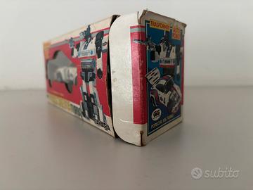 Tutto ciò che si vede in foto ovvero robot, armi con missili che non arrivarono in italia (in alternativa posso dare i classici gommati), box (senza parte del flap gig interno ritagliabile all’epoca), polistirolo e istruzioni.
