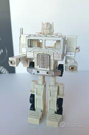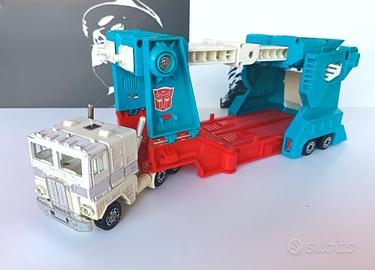 Transformers G1 Ultra Magnus Convoy non completo. Quello che sembrava poter raccogliere il testimone di Optimus prime, da avere assolutamente in collezione anche solo per il gusto di esporre le vetture sulla bisarca. Articolo in buone condizioni generali, presente motrice e tutti gli accessori / armi in foto, si segnala una rottura sulla cerniera della spalla che comunque si tiene su grazie ai perni. Prezzo € 65 più ultra spedizione