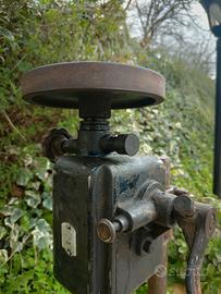 Vendo trapano a colonna antico a manovella, risalente ai primi del 1900. Un pezzo raro e affascinante, perfetto per amatori e collezionisti di strumenti d'epoca. Il trapano è completo di tutti gli ingranaggi originali, massicci e ben conservati.