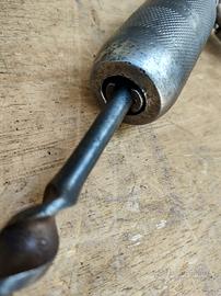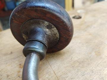 Realizzato in metallo con impugnature in legno, presenta una manovella fluida e una punta elicoidale ben affilata, perfetta per forare legno e altri materiali morbidi.