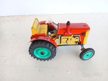 Modellino di un Trattore Zetor (Cecoslovacchia 1980) senza carrello in Buone condizioni. Il Modellino in latta. misura cm15x9x10 di altezza, ha un meccanismo di carica con chiavetta (persa), cambio a 3 marce + retromarcia, ruote sterzanti (ricostruito braccio sterzante).