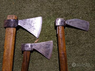 Tre accette antiche forgiate a mano dal fabbro marchiate da collezione