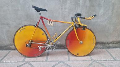 - Bicicletta da pista realizzata su misura con ruote lenticolari marchiate "Gandolfi"