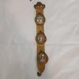 Tre Cornicette Rotonde In Bronzo Dorato Con Damine