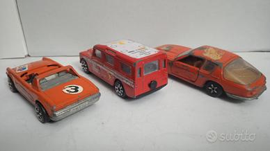 Set di tre modellini di auto in scala 1:43. 2 Marca Politoys. 1 Marca Burago. Per restauro o ricambi