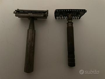 Tre rasoi vintage anni 30/40. Uno è il più pregiato rasoio iniettore Schick vintage TIPO E con manico bachelite ambra. Un altro è un modello della Valet