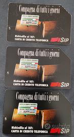 Tre schede telefoniche, usate, della SIP : Compagna di tutti i giorni.