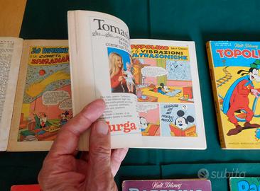Una occasione per le giornate di brutto tempo che sono perfette per leggere vecchi numeri di Topolino libretto ed Albi della Rosa con avventure di Topolino, Paperino, Paperone e nipotini. Tutte disegnate da fumettisti del calibro di Carl Barks, Tony Strobl, Gian Battista Carpi, John Liggera e Giancarlo Gatti. Avventure da tenere il fiato sospeso, tipiche degli anni sessanta e settanta non come quelle odierne fatte per un pubblico di piccolissimi lettori ! E' presente il n° 892 (1972) di Topolino libretto con 50 punti del Club, il n°861 (1972) con altrettanti punti del Club, e il n°926 (1973) con 50 punti. Giochi intonsi, Servizi speciali, la Segretaria per tutti, cedole librarie accluse e tante rubriche dell'epoca. Seguono tre albi della Rosa: Paperino e il Malloppo Natalizio, con un restauro d'epoca fatto da mia sorella nell'angolo alto della prima pagina. L'albo uscì a dicembre del 1960. Topolino alla Ricerca della Città Scomparsa con il bollino del club e la seconda storia mitica della Miniera di Gola Solitaria con Pietro Gambadilegno e la sua banda. (anno 1963) Non poteva mancare Paperino e la Carica dei dinosauri, una storia tutta disegnata da Carl Barks con i paperini in una valle misteriosa popolata da animali preistorici. L'albo è del 1962. E' inoltre incluso l'albo della Rosa del 1955 senza copertina Il Lupo Mannaro pugilatore, disegnato da Carl Buettner.