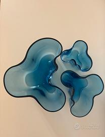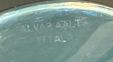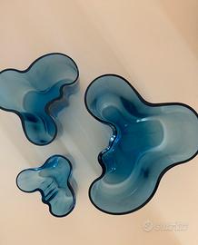 Il vaso, che vinse l’edizione del 1937 Esposizione Universale di Parigi, venne poi scelto come elemento d’arredo nel progetto di Alvar Aalto per l’Hotel Savoy di Helsinki (da cui prese il nome). Fabbricato da IITTALA. Altezze rispettivamente 16, 12 e 10 cm