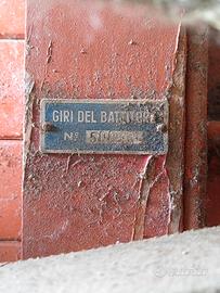 Macchina agricola storica, in legno e metallo, completa di pulegge, ruote e cinghie originali. Ideale per appassionati di mezzi agricoli d’epoca, collezionisti o musei della civiltà contadina.