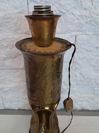 Rara lampada in ottone trench art della prima guerra mondiale, ricavato all'epoca da un proiettile di artiglieria italiano. il bossolo è in perfette condizioni presenta decorazioni a sbalzo con motivi vegetali