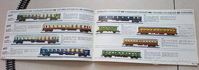 Vintage anni 70'. In scala 1:87, della Lima, locomotore 8023, due carrozze 9024, rotaie per formare un cerchio con diametro di circa 73 cm, alimentatore e il catalogo dei treni elettrici in miniatura del 1969-1970. L'alimentatore funziona ma a volte sembra non avere un contatto perfetto. La scatola è un po' rovinata, come da foto.