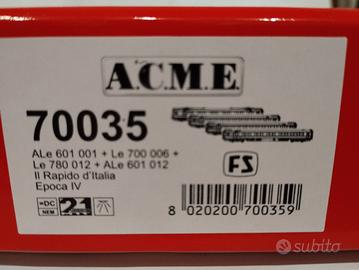 Vendo dalla mia collezione privata articolo nuovo scala 1/87 (HO) con aggiuntivi da montare, marca ACME 70035 Elettrotreno Ale601 formato da 4 elementi del treno FS "Il Rapido D' Italia" tutto illuminato a euro 590,00 avente nr. 308/500.