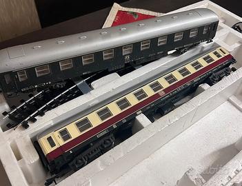 Vendo con scatola originale, n. 2 trenini, binari, alimentatore (no locomotiva)