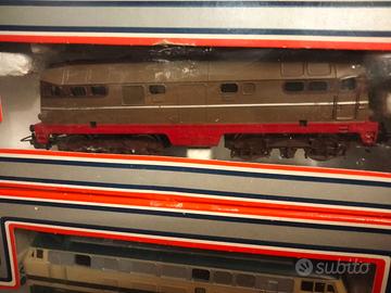 Come da foto vendo 5 locomotive funzionanti ( il manovratore ha la scocca che non si blocca sul fondo ma si puo' aggiustare) , alimentatore originale , binari e dei vagoni.