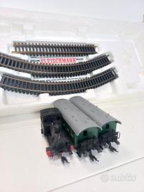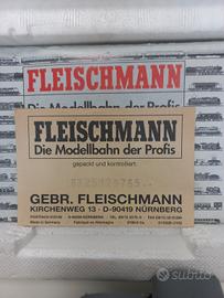 Trenino elettrici Fleischmann scala HO, con binari una motrice e due carrozze funzionante, senza alimentatore, con scatola ma senza coperchio