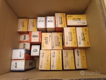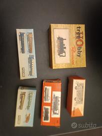 Condizioni strepitose. credo mai utilizzati. trattativa privata. 1.rivarossi L 625/rMOTRICE 2.rivarossi11117 1965 Locomotiva a vapore 0-3-0 Gr 851 FS (Serie TrenHobby in scatola di montaggio)MOTRICE 3.rivarossi 2036 1963 Carro merci chiuso tipo G FS 4.rivarossi 2036 1963 Carro merci chiuso tipo G FS 5.rivarossi 2006 1961 X FS Carro pianale con garitta FS 6.rivarossi C P FS Carro pianale corto tipo P FS 7.rivarossiC Hg 1959 Carro merci chiuso tipo Hg FS 8.rivarossi2502 V 501 carrozza terza classe 9.rivarossi2514 bagagliaio tipo DI delle FS 10.rivarossi2504 Carrozza mista fnm 11.rivarossiC MV 1958 Carro merci chiuso FS per trasporto vino 12.rivarossiV Ciy = 2505 Carrozza centoporte 13.rivarossiC Ltm 1948 FS Carro merci aperto tipo Ltm FS rosso scuro 14.rivarossiV Ciy = 2505 Carrozza centorporte 1954 15.rivarossi C LTM/g carro merci 16.rivarossiV Cab 1955 Vagone di coda tipo Caboose Reading 17.rivarossiC Fz 18.rivarossiC Gon 19.rivarossiV Di 20.rivarossiL 835 R MOTRICE 21.rivarossi C mp 41/g cisterne 22.rivarossi C Ltm/c 2003 23.rivarossi locomotiva ELETTRICE e 424 079 MOTRICE 24.jouef 829.E Loco vapeur 0,40MOTRICE 25.pocherart. 318 26.pocherart. 324
