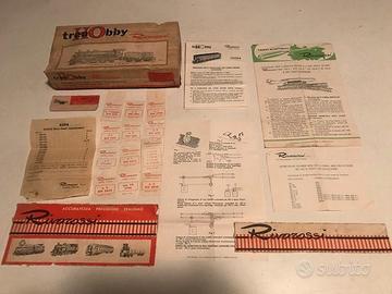 Vendo in unica soluzione lotto (5 motrici, 13 vagoni e 40 binari vari, materiali illustrativi d epoca) e plastico, come da foto.