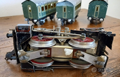 Trenino Buco Bucherer Locomotiva + Tender e 3 Carrozze Passeggeri scala 0 Latta WW2 oer near post