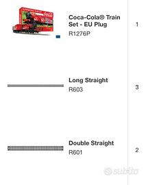 Set Treno a vapore con marchio Coca-Cola e binari aggiuntivi, in totale gli elementi sono:
