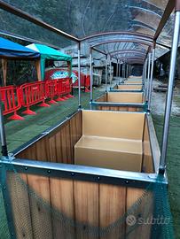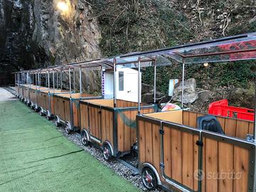 Trenino elettrico su rotaia (con conducente) - 2 locomotive (2 posti ciascuna) + n. 6 vagoni da 4 posti adulti o bambini , altoparlanti per comunicazioni dalla locomotiva, musica o altro.