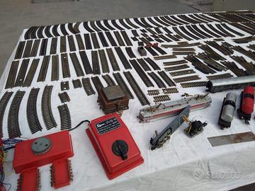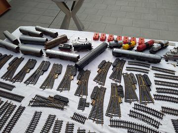 Vendo trenino elettrico composto da oltre 200 binari, completo di scambi, vgoni e due locomotive. (quella nera da sistemare perché non funzionante)