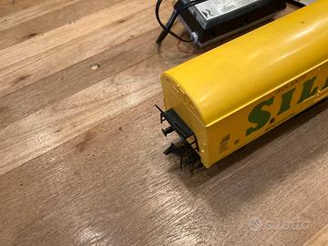 Vendo trenino lima in buono stato . Manca una curva e alcuni connettori dei binari e un gancio del vagone é leggermente danneggiato come in foto Non so se funziona Solo consegna a mano Prezzo non trattabile