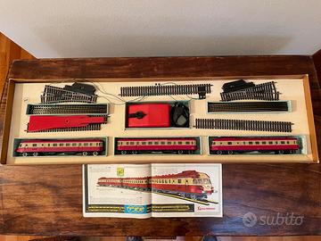 Modello anni 60. Confezione originale un po’ rovinata come da foto. NON funzionante. Vendo anche abbinato a scatola più piccola e casette per un totale di € 160