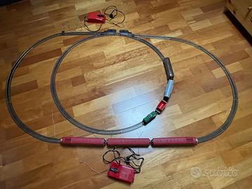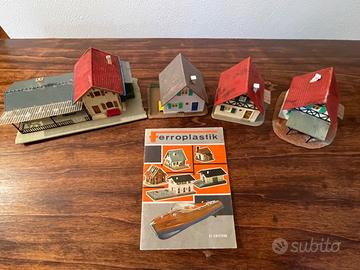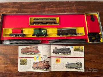 Modello anni 60 da collezione. NON funzionante. Nella foto è la pista rotonda più piccola che è stata montata con pista di altra scatola venduta separatamente. Vendo anche separatamente pista a € 60 e casette a € 15, oppure vendo tutto abbinato a scatola grande per un totale di € 160.