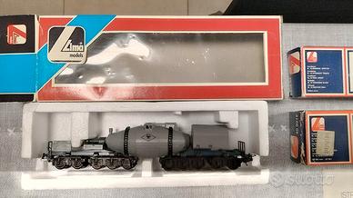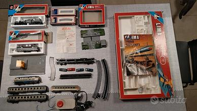 Vendo trenino lima con codice confezione scatola 106200T Set trenino passeggeri con scarica auto - anno 1984 in buono stato di conservazione contenente: 1 locomotore, 2 vagoni passeggeri, 4 auto, 1 vagone porta auto, 1 base scarica auto con scivolo, 8 binari curvi, 4 binari dritti, 1 trasformatore con istruzioni, 2 auto sono un po' rovinate, la scatola è originale in buone condizioni. Spedizione tracciabile ed assicurata. In aggiunta al set del trenino si vendono: 1 passaggio a livello art. 600021, 1 locomotore art. 208160LP, 1 cisterna rotatile art. 309052, 12 binari dritti art. 403023, 12 binari curvi art. 403012 in confezioni originali e 1 vagone passeggeri.