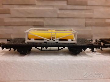 Convoglio da cantiere Marklin scala HO composto da 1 carro con carico macchina movimento terra, 1 carro con carico cisterna, 1 carro con carico pietrisco, 1 carro gru 3 assi con gancio funzionante, condizioni pari al nuovo. Per visualizzare tutti i miei annunci online inserisci nella ricerca " Trenino Varese ".