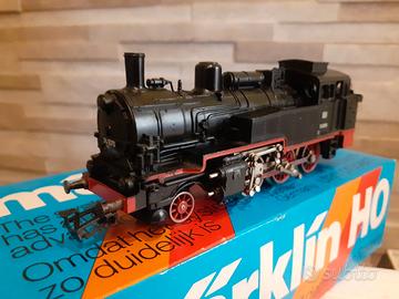 Locomotiva a vapore Marklin scala HO, condizioni perfette, luci anteriori bianche, scatola originale. Acquisti multipli unica spedizione.
