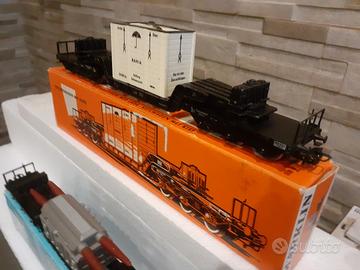 Carri merce articolati 6 assi Marklin scala HO, condizioni perfette, produzione anni '60, telaio e ruote in metallo, scatole originali, 24 euro al pezzo a scelta. Acquisti multipli unica spedizione.