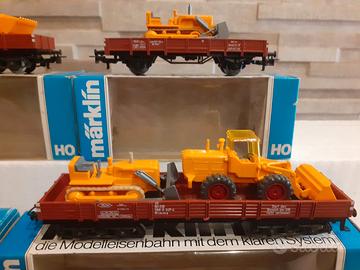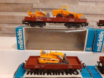 Carri merce 2 e 4 assi Marklin scala HO con carico macchine movimento terra Wiking, nuovi da collezione, ruote in metallo, scatole originali, 14 euro al pezzo per i 2 assi, 18 euro al pezzo per i 4 assi. Acquisti multipli unica spedizione.