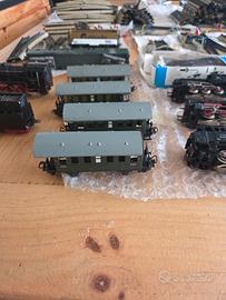 trenino elettrico contenente i seguenti pezzi: 1 carrozza passeggeri Lima 4 carrozze Marklin 1 carrozza frigo Marklin 1 locomotiva lunga Marklin +tender carbone Marklin 4 locomotive Marklin 1 carro frigo Carlsberg Lima 1 carrozza merci Lima 1 pannello di controllo Marklin 40 binari dritti art.5106 Marklin 15 binari curvi Marklin art. 5120 26 binari curvi art. 5100 Marklin 2 binari piccoli curvi Marklin art.5101 2 binari dritti Marklin art.3601/D 2 binari sganciamento Marklin dx e sinistra coda. 3601 2 binari dritti cod. 5107 2 respingenti cod 5129 2 scambiatori Marklin cod 5113 1 binario dritto con cavi alimentazione cod 5108 Marklin 1 incrocio elettrico doppio scambio cod 5128 Marklin contattatemi per avere più foto pagamento in contanti e consegna a mano