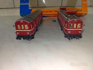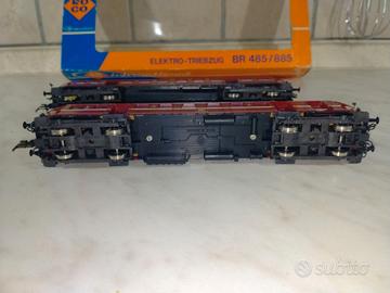 trenino elettrico roco BR 485/885 (scala H0): Descrizione: Elettrotreno articolato della DB (Deutsche Bundesbahn) Serie BR 485/885. Solitamente composto da 2 o 3 elementi, epoca IV. Versioni sia DC che AC, dotato di luci reversibili e motorizzazione centrale sulle 4 assi. Codici tipici: Roco 04148A, 43004, 14148A, 23387. Fascia di prezzo nuovo mai usato
