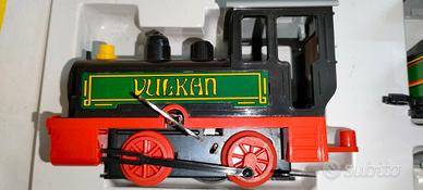 Piccolo treno VULCAN ANKER 2127 meccanico con binari a S in plastica e latta litografata.