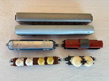 2 locomotive funzionanti 2 vagoni merci 2 carrozze scala H0 condizioni usato come da foto visto e piaciuto