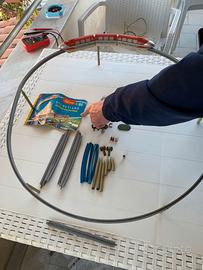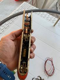 Set vintage anni '60 Schuco Disneyland-Alweg in scala 1/90, monorotaia n. 6333, con modellino di treno in livrea rosso/argento/crema.Trenino molto raro, riproduzione in scala 1 a 90 dell' esistente trenino Disneyland,anni 60, perfettamente funzionante e con istruzioni originali in tedesco.Manca solo lo scatolo originale.Contatti per ogni info
