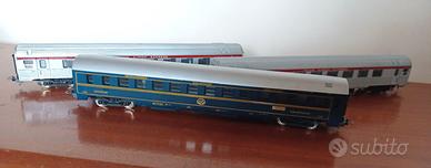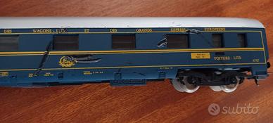 Comprende motrice, 3 carrozze (incluso vagone letti), rotaie e alimentatore-trasformatore, tutto come da foto. Funzionamento non testato.