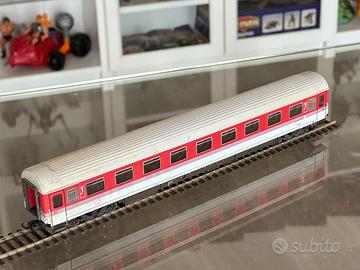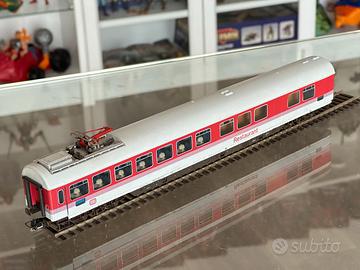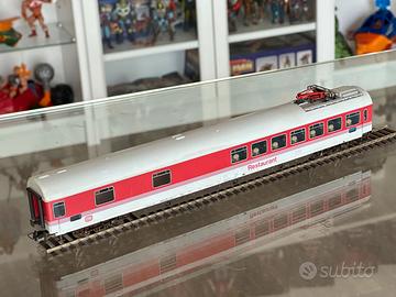 Treno Trenino Roco 44780 – Carrozza passeggeri 1ª classe DB InterCity, Scala H0 (NO SCATOLA) Epoca: IV (circa 1970–1990) Marca: Roco Codice articolo: 44780 Numero reale: 61 80 19-90 541-2 (DB InterCity) Ferrovia: Deutsche Bahn (DB, Germania) 🇩🇪 Tipo: Vagone rosso, carrozza passeggeri 1ª classe InterCity Uso storico: treni InterCity nazionali e internazionali della Deutsche Bahn negli anni ’70–’90, inserita in composizioni con carrozze 2ª classe, ristorante e bagagliaio della stessa serie IC Treno Trenino Roco 44784 – Carrozza ristorante DB InterCity, Scala H0 (SCATOLA) Epoca: IV (circa 1970–1990) Marca: Roco Codice articolo: 44784 Ferrovia: Deutsche Bahn (DB, Germania) 🇩🇪 Tipo: carrozza ristorante (Speisewagen) per convogli InterCity / Express Uso storico: carrozza ristorante utilizzata nei convogli InterCity / Express DB anni ’70–’80 nella rete ferroviaria tedesca, posizionata nei treni a lunga percorrenza tra carrozze passeggeri di 1ª e 2ª classe LEGGERE ATTENTAMENTE: Modello di treno in scala da collezione. Articolo usato. Condizioni buone in rapporto all’età, con possibili lievi segni del tempo o dell’utilizzo. La scatola originale, se presente, può essere usurata, incompleta o mancante. Si consiglia di visionare attentamente le foto, parte integrante della descrizione. Vendita come oggetto usato da collezione.