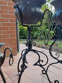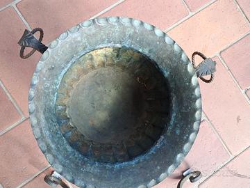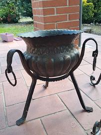 Tre portavasi in rame con treppiedi in ferro battuto. I treppiedi sono in ottime condizioni, i portavasi in rame presentano alcuni forellini. Ritiro in zona. 100 euro per tutti e tre.