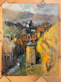 Olio su tavola del pittore Renato Trevisan. Midura circa 50x70, no cornice. Titolo: LA VALLE DELLE FATE - MONFUMO SOLO SPEDIZIONE