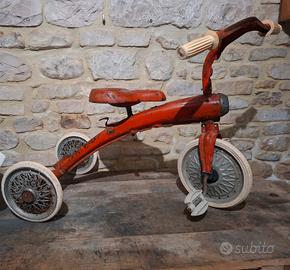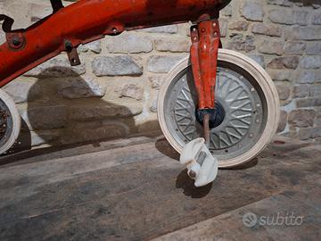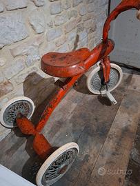 Vendo triciclo d'epoca in metallo, un pezzo autentico perfetto per appassionati di vintage, collezionisti di giocattoli antichi o per chi cerca un elemento d'arredo unico per vetrine e loft in stile industrial.