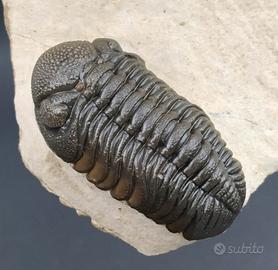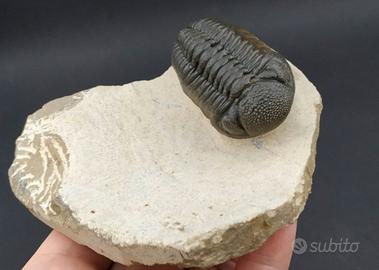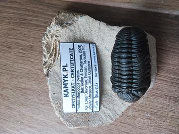 Morocops ovatus – 99×91×36 mm Devoniano, Inferiore (419,2 – 393,3 milioni di anni) – Marocco Esemplare: Beautiful Trilobite Oggetto: Su matrice Nome scientifico: Morocops ovatus Provenienza: Marocco Periodo geologico: Devoniano, Inferiore (419,2 – 393,3 milioni di anni) Condizioni: Naturale Trattamento: glued Dimensioni: 99×91×36 mm Peso: 272 g Bellissimo trilobite Morocops ovatus (Mc Kellar & Chatterton, 2009). Originariamente assegnato a Barrandeops, ma quel genere era sinonimo di Morocops. La matrice e il fossile vengono incollati prima della preparazione. 1% di restauro. Età – Devoniano inferiore, Emsian, Tazoulait Fm. Località – Marocco, Jebel Oufatene Dimensione matrice – 99x91x36 mm Dimensioni trilobite – 55x29 mm Peso: 272 g Acquistato su sito d'aste Prezzo trattabile