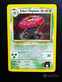 Carte Pokemon Gym Heroes Erika’s Oddish, Gloom e Vileplume holo 5/132. Leggero segno sul retro visibile in foto