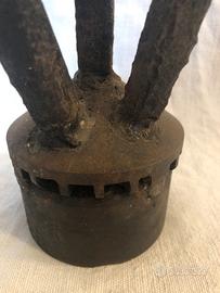 Triplo crocifisso in ferro di produzione artigianale formato da 3 croci saldate ad una base rotonda. Tutto in ferro. Altezza max 40cm, diametro base 9cm. Le condizioni sono come da foto; le foto sono parte integrante della descrizione dell'oggetto.